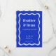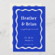 Retro Blue Wavy Squiggle Unique Photo Wedding Enregistrer La Date