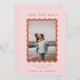 Un mariage branché enregistrer le faire-part de date avec votre photo préférée dans un cadre de pétoncle ondulé en terre cuite sur un arrière - plan rose vif et texte en terre cuite.