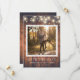 Lorsque vous avez un mariage d'inspiration rustique et que vous voulez des lampes à cordes, cette suite mariage accomplit les deux. Cette invitation est faite d'un arrière - plan rustique en bois, de lampes à cordes et d'une photo.