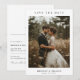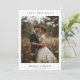 Ce mariage rustique avec photo Save the Date présente un cadre forestier romantique avec l'étreinte du couple, mis en valeur par un cadre naturel et doux. Le design utilise la typographie classique sur l'image, présentant un charme intemporel et élégant.