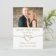 Mariage blanc simple, moderne, élégant enregistrer l'invitation de la date avec coeur de corde or romantique et photo.
