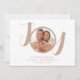 Cette carte de mariage "Save the Date" est décorée avec le mot JOY dans une typographie beige élégante.