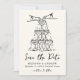 Annoncez votre journée spéciale avec style avec la Tour de Champagne Whimsical Photo Save the Date. Cette carte exquise présente une illustration chic en ligne noire de lunettes de champagne empilées, avec du champagne qui filme gracieusement, dressée contre un arrière - plan crème. "Save the Date" est élégamment affiché dans un script manuscrit noir, ajoutant une touche personnelle et élégante. Ci-dessous, vos noms, la date de mariage et l'emplacement sont présentés, ce qui fait de cette carte uniquement la vôtre. L'arrière de la carte affiche votre photo de fiançailles vertical à fond saigné.