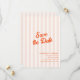 Nous vous présentons notre magnifique faire-part de mariage aux pêches et aux mandarines, conçu pour ajouter une touche de charme rétro à votre jour spécial. Les rayures douces pêche servent de toile de fond magnifique, complétées par la calligraphie classique vibrante mandarine qui ajoute une touche de couleur et de sophistication. Cette carte de faire-part est parfaite pour les couples qui apprécient le style rétro avec une touche moderne, donnant le ton pour une célébration de mariage mémorable et amusante.