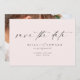 Le Modern Classic Blush Pink Wedding Save The Date allie un design contemporain minimaliste et un script élégant dans un rose pâle, parfait pour les fêtes du printemps ou de l'été. Offrant une option pour une photo personnelle, il capture magnifiquement une vibe moderne mais boho - n'hésitez pas à contacter si vous avez besoin d'aide pour la personnalisation!