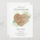 Carte de sauvegarde de mariage rustique à l'aquarelle avec cœur en bois de eucalyptus. Un design simple avec de la verdure d'eucalyptus pour un look de mariage bohème est délicatement stylé. Des éclaboussures d'aquarelle complètent la composition et lui donnent un charme spécial pour un mariage champêtre.