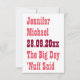 "Mariée. Marié. Date du mariage. Le grand jour. 'C'est tout dit.' Une carte d'invitation de mariage personnalisée, drôle, amusante, cool, blanche et simple pour annoncer la date de votre mariage. Personnalisez la carte avec la date de votre mariage, le lieu de la cérémonie (ville et état), ainsi que les noms de la mariée et du marié. Une invitation 'save the date' idéale, drôle, originale, hilarante et humoristique pour tous vos amis, votre famille et vos proches. Une invitation amusante pour la mariée et le marié à envoyer en tant que couple.