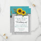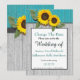 Invitation de mariage rustique sarcelle bois, tournesol doré charmant moderne campagne, Parfait pour les mariages de cette année