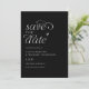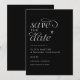 Carte de sauvegarde de date (Noir avec texte blanc) : Cette carte de sauvegarde de date de mariage moderne et élégante présente un fond noir épuré avec un texte blanc simple et un cœur dessiné à la main charmant. Son design minimaliste dégage de la sophistication, ce qui en fait la façon parfaite d'annoncer votre jour spécial avec style et grâce. Idéal pour les couples qui recherchent une touche raffinée et intemporelle pour leur papeterie de mariage.