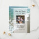 Célébrez votre mariage sur le thème de la plage ou de votre croisière avec cette belle invitation avec un arrière-plan représentant une scène océanique. Caractéristiques d'un océan bleu aquatique avec des vagues blanches se précipitant sur le rivage de sable brun clair. Élégant, contemporain et chic.