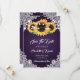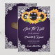 Carte de mariage rustique 'save the date' avec des tournesols et des guirlandes lumineuses sur un fond dégradé violet.