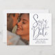 Save The Date Marine Blue Mariage 2 Photo QR Code Élégant Script