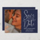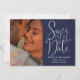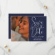 Save The Date Marine Blue Mariage 2 Photo QR Code Élégant Script