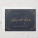 Élégant script de calligraphie manuscrite avec cadre fleuri en bleu marine et couleur faux or, propre et formel, grand mariage enregistrer les cartes de date pour mariage vintage, mariage traditionnel, et mariage classique toute l'année. Voir toutes les pièces correspondantes dans la collection.