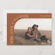 Modern and stylish save the date card featuring a text that says "mark your calendars" along the curved frame photo. One photo in the front and one on the back. The background is terracotta.