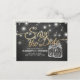 Wedding Save The Date Postcard Templates - Elegant Faux Gold Foil Save the Date Lettering Script and Vintage Mason Jar String Lights with Grunge Black Chalkboard Background.