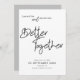 Un design romantique moderne pour demander à vos invités d'enregistrer votre date de mariage avec un style d'écriture manuscrite informel script set pour Better Together au centre de coordonner avec le "et" dans le même script set entre vos noms. Le reste du texte peut être facilement personnalisé. Un arrière - plan gris se trouve à l'arrière, qui peut être changé en une couleur différente si vous le souhaitez via l'option customiser plus loin.