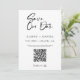 Moins de tracas, pas de courrier manquant lorsque vous invitation vos invités en ligne avec un code QR qui les envoie directement à votre site mariage pour plus de détails. Le design se compose d'un minimaliste, simple noir et blanc créatif avec une calligraphie moderne très élégante script Save Our Date. Suivez facilement les instructions pour insérer l'URL de votre site Web mariage dans l'exemple ci-dessus. C'est tout ce qu'il y a à ça.