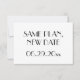 Cartes plates de mariage blanc de style Art Déco minimal avec texte modifiable Même Plan Nouvelle Date