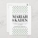 Small forest green triangles over a clean white background, make this minimal save the date announcement the perfect way to invite your guests to your outdoor wedding! Modern and sleek lettering keep this invitation simple and clean while the triangles can represent mountains or trees. Personalize the invitation by adding a photo on back, as well as all your wedding information.