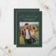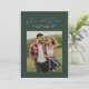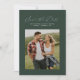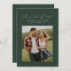 Simple, minimaliste et élégant, cette photo verticale enregistrer la date est la façon parfaite d'annoncer votre fiançailles et le prochain mariage à vos amis et votre famille. Le script "save the date" se trouve au-dessus de votre type personnalisé avec beaucoup de place pour les noms, la date mariage, l'emplacement de l'événement et toute autre information que vous souhaitez partager comme un site Web. Le dos est un chasseur vert assorti avec un motif blanc, mais la couleur peut être changée en cliquant sur "personnaliser".