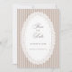 Elegant wedding invitation featuring classic mocha beige French pinstripes and a delicate scalloped lace doily-inspired frame for a romantic vintage look. The soft neutral ivory and mocha palette creates a timeless, refined aesthetic that pairs beautifully with farmhouse weddings, classic romantic celebrations, and modern vintage wedding themes. Clean, sophisticated, and effortlessly chic, this design is perfect for couples who love neutral wedding stationery with a touch of lace elegance.