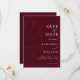 Easily personalize your wedding save the date cards with this editable template. Features minimal elegant typography design in burgundy color.