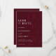 Easily personalize your wedding save the date cards with this editable template. Features minimal elegant typography design in burgundy color.