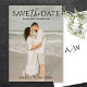 Modern Elegant Minimalist Typography Photo Save the Date in black text. This template features a sophisticated full-photo layout that puts your favorite engagement memory front and center. Using a timeless mix of classic serif typography and a delicate script accent, the "Save the Date" heading is designed to overlay beautifully on your photo. Choose a photo that contrasts with the black text or choose the card option with white text at Cross Fox Design. Adjust photo placement if needed in the design edit tool. Place your initials in the text box for the monogram area on back of the card. Contact the designer for any customization questions.