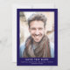 Modern photo Graduation Save the Date Navy Blue. Available digitally and printed. Minimalist and simple. Change the words as required and replace the sample photos with your own.