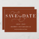 Rouille et blanc Script moderne Simple Calligraphie manuscrite Mariage Enregistrer les cartes de dates Customisez avec votre texte pour le rendre unique