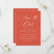 Annoncez votre mariage dans un style dynamique avec nos élégantes cartes de dates. Doté de "Save the Date" en calligraphie blanche magnifique contre un arrière - plan de Vérone de coucher de soleil orange, ce design rayonne de chaleur et de sophistication. Les couples peuvent personnaliser la carte avec leur nom, date mariage, emplacement et site web mariage, le tout présenté en gras en lettres blanches pour un contraste saisissant. Simple, moderne et intemporelle, cette sauvegarde de la date est la façon parfaite de partager vos nouvelles passionnantes et de donner le ton pour votre célébration inoubliable.