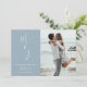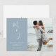 Annoncez votre jour de mariage avec votre photo impressionnante contre un arrière - plan bleu poudreux avec vos initiales dans un script de calligraphie moderne fantaisiste. Idéal Enregistrer la date pour les mariages, fiançailles, anniversaires et autres événements spéciaux.