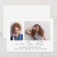 Moderne Grad 2 Photos Script Graduation. Disponible numériquement et imprimé. Remplacez simplement les deux exemples de photos par les vôtres et personnalisez avec vos détails en bas. Enregistrer la date est dans un script de style manuscrit élégant.