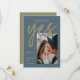Une carte moderne Save the Date avec une palette de couleurs unique avec gris et vert olive, avec grand script de calligraphie audacieux pour Oui et votre image de choix. Toutes les couleurs de cette photo Enregistrer la date Modèle peuvent être changées! Une invitation unique mais abordable Save the Date pour les couples modernes.