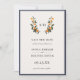 Oranges d'agrumes et crête de monogramme de verdure, mariage enregistrer la carte de date. Crème d'ivoire et bleu marine arrière - plan et couleurs de cadre.