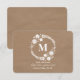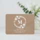 Un mariage sauve la date avec une couronne blanche fleurie avec monogramme au centre. Personnalisez le texte. L'Arrière - plan est d'inspiration papier brun.