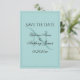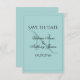 Joli arrière - plan bleu oeuf robin avec un monogramme bleu profond au centre. Ce magnifique script a été utilisé pour donner à cette "Save the Date" pure élégance. Juste adorable et parfait pour vous.
