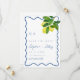 Donnez le ton de votre fête avec nos Monograms Citrus citron & Bleu Wave Border Enregistrer la date. Doté d'une branche de citron fraîche et d'une élégante bordure bleue ondulée, ce design saisit l'essence d'une fête côtière ensoleillée. Personnalisé avec vos initiales, noms, date mariage et emplacement, il offre une première impression parfaite de votre prochain mariage. Idéal pour les mariages d’inspiration italienne, estivale ou de destination, ce Save the Date allie charme intemporel et détails vibrants - une belle façon d’exciter vos invités pour ce qui est à venir.