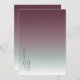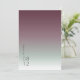 L'arrière - plan de toutes les pièces de cet ensemble de mariages minimaliste est un dégradé saisissant de couleurs allant du bordeaux foncé au vert sauge doux en passant par le blanc. La carte mariage "Save the Date" présente un design moderne et élégant et une police sans serif contemporaine pour ajouter à son élégance sobre. Ajoutez facilement vos noms et votre date de mariage à l'aide du modèle fourni. Recherchez ID741 pour voir l'ensemble complet des produits correspondants dans la brume bordeaux ou choisissez l'une des autres combinaisons de dégradé disponibles pour convenir à votre palette de couleurs mariages.