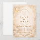 A luminous celestial design featuring delicate crescent moons and scattered constellation stars across a warm parchment background. A refined gold border frames the composition, while elegant script typography creates a graceful focal point worthy of such a meaningful milestone. The soft ivory and champagne tones give the entire piece a timeless, radiant glow. Perfect for a quinceañera celebration that feels romantic, elevated, and touched by starlight.