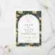 A rich and sophisticated floral design featuring deep navy tones accented with warm golden blooms, framed within a timeless arched layout. The contrast between the dark background and soft ivory center creates a striking, high-end aesthetic that feels both modern and classic.