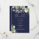 This elegant navy blue greenery floral save-the-date invitation can be personalized with your information in chic typography. Designed by Thisisnotme©