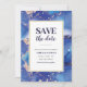 Save the date invitation with navy blue and gold alcohol ink art.