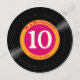 Lumineux et audacieux et les années 70. Un mariage de papier rond style vinyle rétro numéro de table. En orange doré, rose chaud et blanc cassé, c'est un accent unique pour vos tables. Élégant et lisible, ce design personnalisé amusant comprend une image de disque vinyle. Le étiquette affiche votre numéro de table. La bordure étiquette affiche vos noms et votre date de mariage dans un script rétro. Si vous aimez la musique ou le style vintage, c'est une excellente façon de donner le ton à votre mariage super. Les couleurs de ce design se coordonnent bien avec de nombreuses fleurs qui ajoutent une couche à vos tables mariages. L'avant et l'arrière présentent la même conception, ce qui vous donne des options d'affichage supplémentaires. Tout le texte est personnalisé par vous et fonctionne dans n'importe quelle langue, Étiquette, bordure et couleurs de texte peut être customisé dans l'outil de conception. La couleur de l'enregistrement est noire.