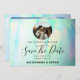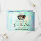 Opal Gemstone Elegant Enregistrer la carte Date est une excellente façon d'annoncer votre prochain événement spécial. Ce design unique et élégant attirera l'attention de tous vos invités, tout en transmettant les détails importants dont ils ont besoin pour planifier l'occasion à l'avance. La carte comporte deux photos à l'avant et à l'arrière, encadrées par un arrière - plan coloré et encore léger, aux tonalités bleu, rose et jaune vif, qui lui donnent un look attrayant. En outre, il y a beaucoup de champs de texte personnalisables pour que vous puissiez inclure toutes les informations pertinentes sur le moment et l'endroit où se déroulera votre événement ainsi que d'autres détails utiles comme le site Web du mariage. #hipstersavethedate #photosavethedate #modernsavethedate