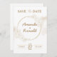 Faites une première impression saisissante avec la carte "Save the Date" de mariage élégante à motif floral or blanc. Avec son design floral blanc exquis complété par des accents dorés scintillants, cette carte établit magnifiquement le ton pour vos prochains noces. L'esthétique minimaliste mais luxueuse garantit que votre annonce soit à la fois intemporelle et captivante.