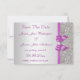 Cartes de mariage personnalisées "Save The Date". Élégantes cartes doubles recto-verso de couleur argent et orchidée radieuse - couleur Pantone de l'année 2014 - avec un motif imprimé pailleté étincelant, des nœuds et des rubans vectoriels brillants et une jolie image imprimée de diamants, de bijoux clinquants et de texte rose sur un fond dégradé argent. Ces cartes de notes formelles classe, glamour, à la mode, violettes / lilas / lavande et argentées sont décorées des deux côtés et imprimées sur le papier d'invitation de votre choix. Belles cartes doubles recto-verso chic, tendance, modernes et élégantes avec une touche féminine et glamour. Veuillez noter : Toutes les invitations sur Zazzle ont des images imprimées à plat. J'ai des produits assortis pour les mariages dans ma boutique. Le texte, la police et les couleurs de la police sont tous personnalisables pour répondre à vos besoins. Si vous avez besoin d'aide pour personnaliser votre produit, veuillez me contacter via ma boutique.
