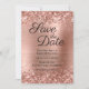 Faux parties scintillant en or rose et rose blush et or rose sombre pour votre mariage enregistrer les informations de date. La police décorative "Save the Date" est un élégant style de calligraphie contemporaine. Les informations sur le nom et l'événement s'affichent dans un style de police plus classique. Glam parties scintillant dégradé mariage enregistrer la date. Faux parties scintillant d'or rose enregistrer les dates.