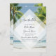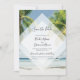 Cet hôtel design dispose de palmiers tropicaux sur une plage. La belle verdure des palmiers contraste avec le ciel bleu et l'eau. L'élément diamant blanc opaque met la typographie moderne au premier plan. Une parfaite fusion entre moderne et chic. Un design de verdure palmier idéal pour une destination de plage tropicale mariage. Mariage de plage Enregistrer le design de la carte Date avec des éléments modernes. Des invitations de mariage et d'autres articles de papeterie sont également disponibles.